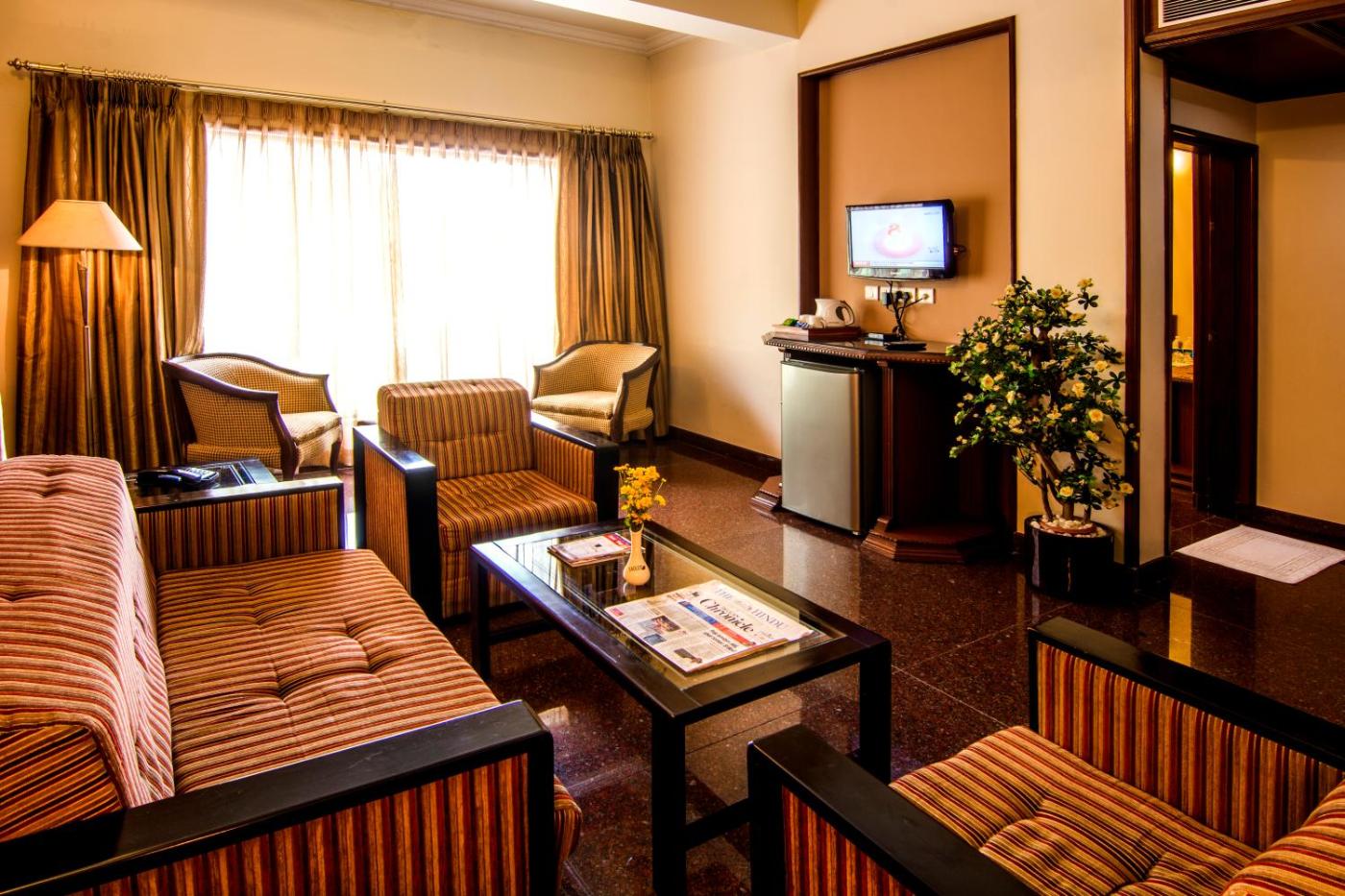 Grand Panorama Executive Suite. This suite comes with 1 living room, 1 separate bedroom and 1 bathroom with a shower and free toiletries. The air-conditioned suite features a flat-screen TV with cable channels, a tea and coffee maker, executive lounge access, a seating area as well as garden views. The unit has 3 beds. ;