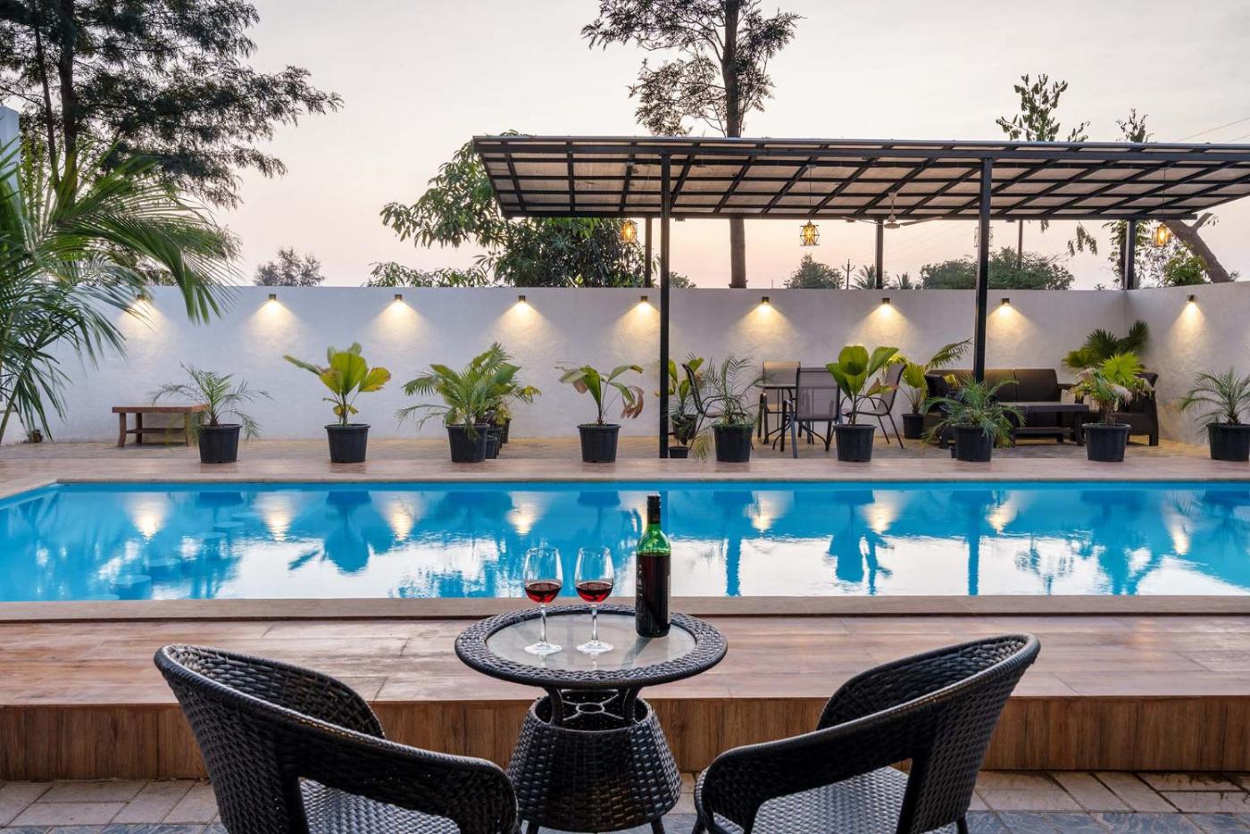 Set in GirnÄre, StayVistas Vinho Sunsets - Farm-View Villa Near Sula with Pool & Terrace offers accommodation with private pool, free WiFi and free private parking for guests who drive. The property features garden views and is 6.3 km from Someshwar Temple and 14 km from Sundarnarayan Temple. Outdoor seating is also available at the villa.
