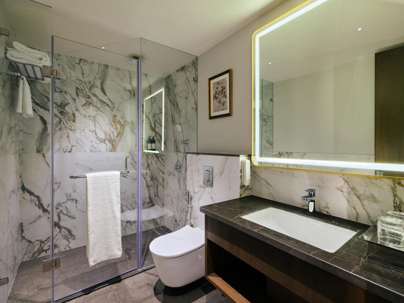 Premium Room. Providing free toiletries, this double room includes a private bathroom with a shower, a hairdryer and slippers. The spacious double room provides air conditioning, a minibar, a tea and coffee maker, a wardrobe and a flat-screen TV with satellite channels. The unit offers 1 bed. ;