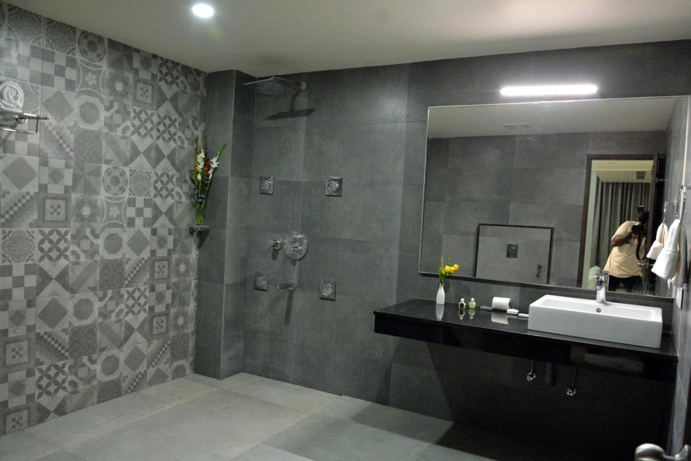 Standard Double Room. Providing free toiletries, this double room includes a private bathroom with a shower. The air-conditioned double room provides a flat-screen TV with satellite channels, soundproof walls, a coffee machine, a seating area as well as city views. The unit offers 1 bed. ;